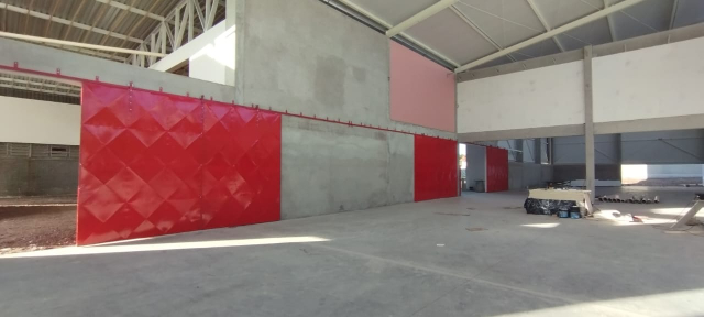 Portão industrial de correr com contra peso, termosensivel, para fechamento automático em caso de incêndio. Fabricado nas normas 11.742 / 2018 ABNT. ideal para separação e compartimentação de ambientes.